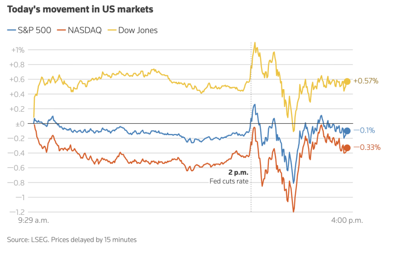 时隔九月,美联储终于宣布降息了,降得不多,25个基点。