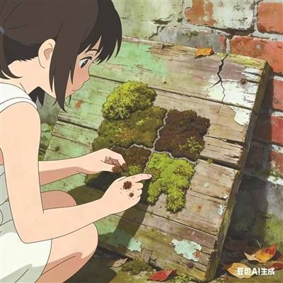 我找来一块废弃的木板,小心翼翼地用铲子将苔藓铲起,像拼图一样在木板上排列。一开始,苔藓东倒西歪,有的边缘翘起,有的颜色发黄。爷爷走过来,递给我一把小喷壶,轻声说道:“万物皆有灵性,只要用心呵护,自能成景。”